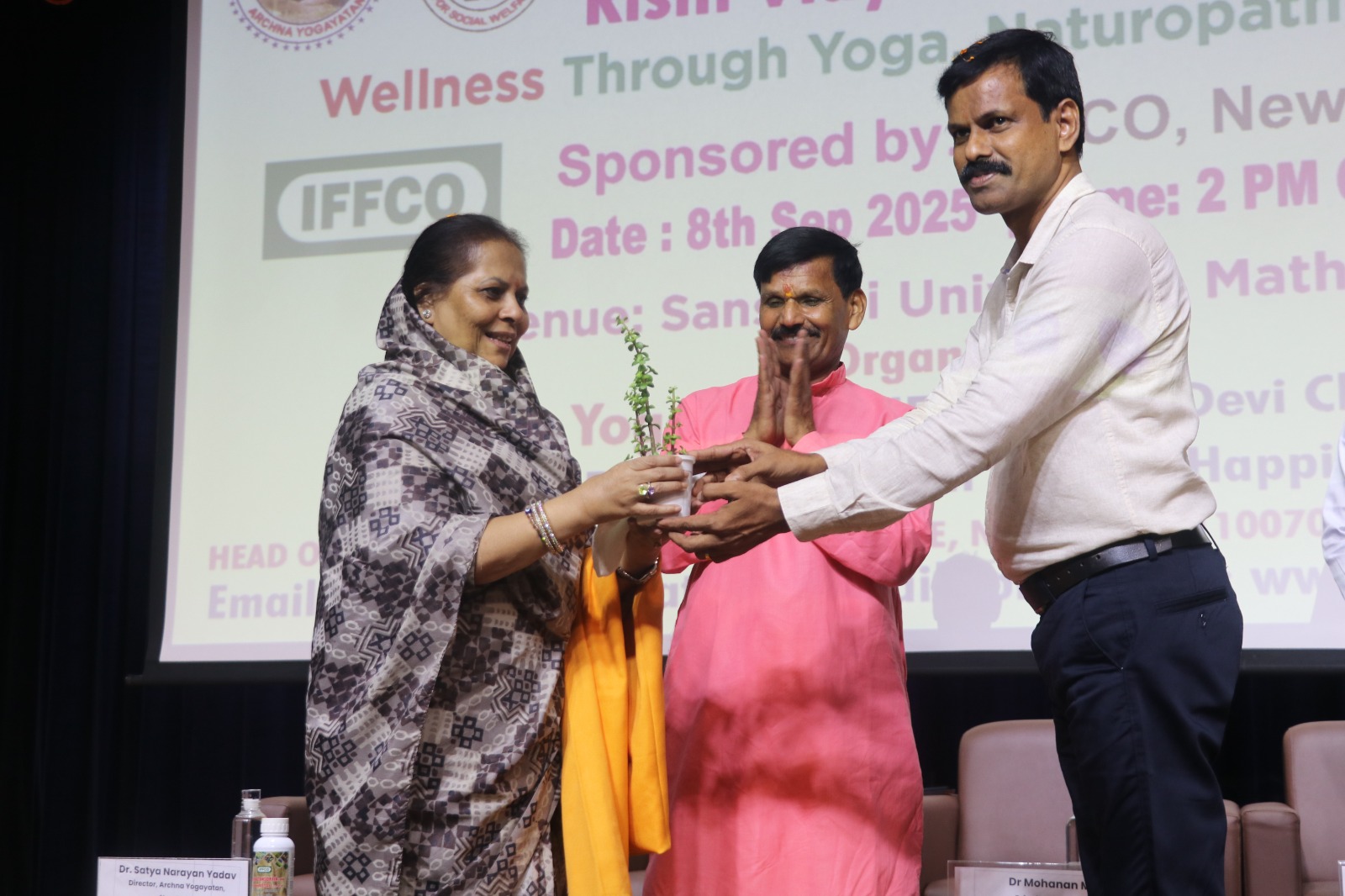 मथुरा। संस्कृति विश्वविद्यालय के संतोष मैमोरियल सभागार में संस्कृति आयुर्वेदिक मेडिकल कॉलेज एण्ड हास्पिटल तथा स्कूल ऑफ एग्रिकल्चर के संयुक्त तत्वावधान में अर्चना योगायतन, नई दिल्ली के द्वारा "ऋषि विद्या कृषि विद्या" पर एक कार्यशाला का आयोजन किया गया। कार्यशाला में मुख्य अतिथि श्रीमती अनिता चतुर्वेदी ने कहा कि आज प्रकृति से छेड़छाड़ करने का बहुत बुरा परिणाम हमारी मानवता पर पड़ रहा है। पर्यावरण प्रदूषित हो रहा है और जब तक हम अपनी प्रकृति की रक्षा नहीं करेंगे तब तक यह स्थिति नहीं बदलेगी। अनेक समाजिक संस्थाओं से जुड़ी श्रीमती अनिता ने बताया कि मैं अपने जीवन में भी अधिक से अधिक प्रकृति प्रदत्त चीजों का इस्तेमाल करती हूं। भारतीय आयुर्वेद हमारे ऋषियों की देन है, हम सबको उसके अनुसार अपने जीवन को स्वस्थ बनाए रखने में बड़ी मदद मिल सकती है। आज सारा विश्व जब आयुर्वेद को बड़ी उम्मीद के रूप में देख रहा है। अपने प्राचीन व परम्परागत प्राकृतिक विज्ञान के माध्यम से ही शुद्ध आहार उपलब्ध हो सकता है जिससे हम सभी स्वस्थ रहते हुए समाज में अपना महत्त्वपूर्ण योगदान दे सकते हैं। इस अवसर पर कृषि विभाग मथुरा के सत्यवीर जी ने प्राकृतिक कृषि विद्या को अपनाने तथा उसे सामान्य कृषक तक इस कृषि विद्या को पहुंचाने पर बल दिया । अर्चना योगायतन, नई दिल्ली के निदेशक और योग गुरु डॉ सत्यनारायण यादव ने प्राकृतिक यौगिक शैली का सभागार में उपस्थित सभी लोगों को अभ्यास कराया एवं व्यावहारिक और परम्परागत विज्ञान के बारे में बहुत उपयोगी जानकारियां दी । कार्यशाला में डा. सत्यनरायण ने वर्कशाप में बताई जानकारियों के आधार पर विद्यार्थियों से पांच प्रश्न किए तथा उत्तर बताने वाले विद्यार्थियों को टी शर्ट प्रदान कर उन्हें सम्मानित किया। इस अवसर पर संस्कृति आयुर्वेदिक मेडिकल कॉलेज के प्राचार्य डॉ एम. मोहनन् ने पारम्परिक ऋषि विद्या की महत्ता बताई और कहा कि इसे अपनाने पर हम अपना व राष्ट्र का कल्याण करने में सक्षम होंगे। कॉलेज की उपप्राचार्या डॉ एकता कपूर ने सभी अतिथियों का विशेष रूप से परिचय कराया। श्री सुधिष्ट मिश्र के स्वागत भाषण और विद्यार्थियों द्वारा सरस्वती वंदना के साथ कार्य़शाला का शुभारंभ किया गया । बी.ए.एम.एस. की छात्रा सुश्री जाह्नवी ने कार्यक्रम का सञ्चालन किया । इस अवसर पर पी.जी. सङ्कायाध्यक्षा डॉ अनीश तथा कालेज के सभी गणमान्य प्राध्यापकगण उपस्थित रहे । कार्यक्रम के अन्त में छात्रों व प्राध्यापकों द्वारा परिसर में वृक्षारोपण किया गया ।